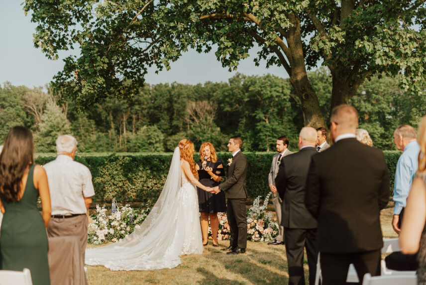 A couple is married in a pond-side ceremony at Sue-Ann Staff Estate Winery