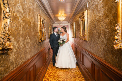 Newlyweds in the halls of Prince of Wales wedding venue in Niagara