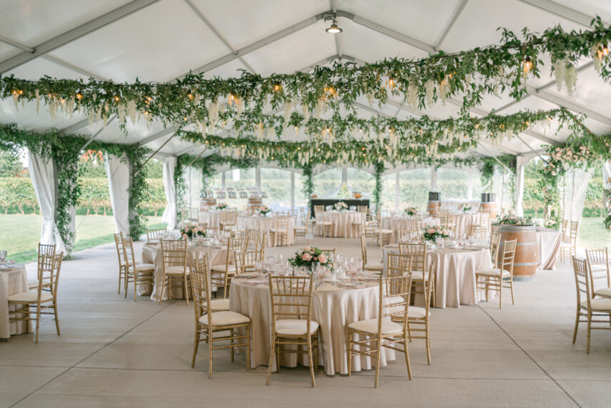 Weddings at Sue-Ann Staff are never a dull affair! Nestled in the heart of wine country, this outdoor venue boasts breathtaking views of rolling vineyards and the charming pondside wedding ceremony space, making every moment—from your first look to your last dance—special. For your wedding reception, you’ll dance the night away in an elegant white marquee with permanent flooring and twinkling crystal chandeliers. Don’t forget to pose underneath the white gazebo for truly stunning photos that’ll last a lifetime. This winery provides the perfect canvas for your outdoor fairytale wedding.