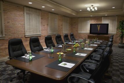 For a venue that ticks all the boxes, check out Pillar and Post in Niagara-on-the-Lake. This beautiful Georgian-era hotel boasts plush guestrooms, meeting rooms for small and large corporate gatherings, two onsite restaurants, and a full-service spa for some much-needed TLC after hours.