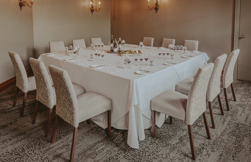 Table setting for Wine Library conference venue at Inn On The Twenty in Jordan Village