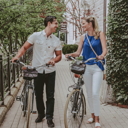 Couple enjoying bicycles during their stay in Jordan House in Twenty Valley