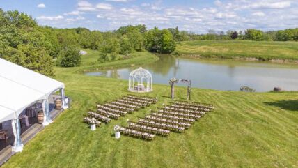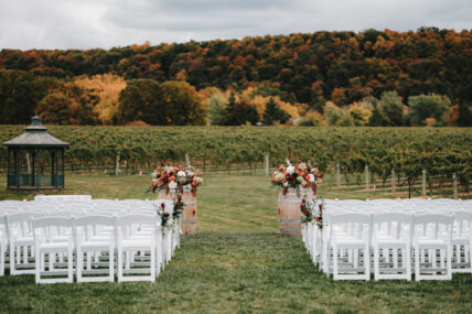 Celebrate your love enveloped by rows of estate wines at the stunning Bella Terra Vineyards. Your unforgettable occasion includes a vineyard wedding ceremony and celebration under the tented Vineyard Terrace overlooking the properties pond.