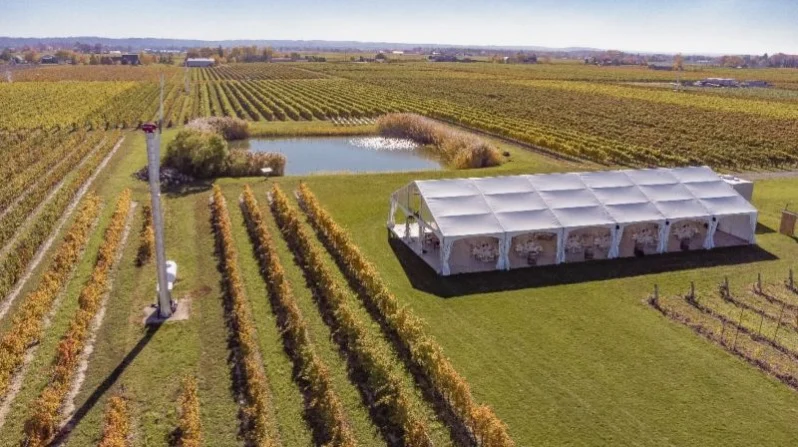 A romantically intimate wedding space in Niagara, nestled along the base of the Niagara escarpment with views of the Cave Spring Vineyard.
