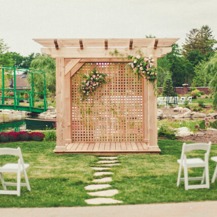 Pronounce your love in a ceremony space surrounded by romantic climbing roses. This rose gardens elevated platform ensures that all guests have a full view of the wedding ceremony and all the special moments.