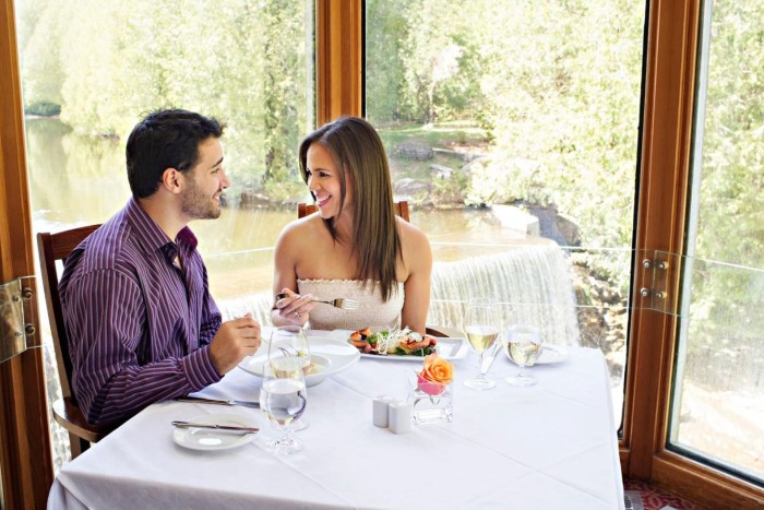 A couple enjoying a fall meal at Headwaters Restaurant in Caledon