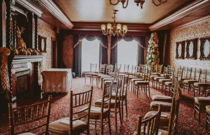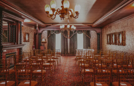 Create a truly magical affair surrounded by warm cherry wood and sparkling lights in a venue rich with unmatched Victorian luxury. Suitable for small receptions.