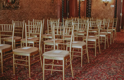 Make a statement on your wedding day in this ornate space that transports guests back to the time of elegance, romance, and sophistication. Suitable for ceremony or reception.