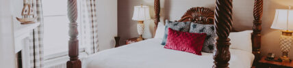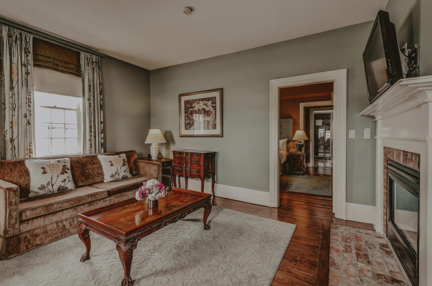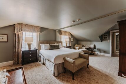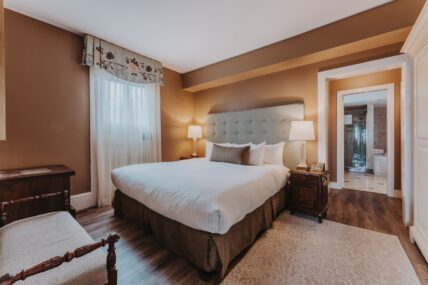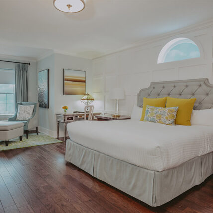 These guest rooms feature a king size bed, jacuzzi and fireplace. They are located in the Dockmaster House, separate of the main hotel on Ricardo Street.