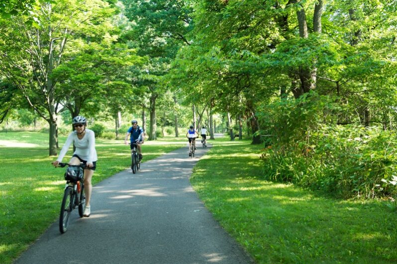 A group biking in Queenston Heights Park in Niagara on the Lake