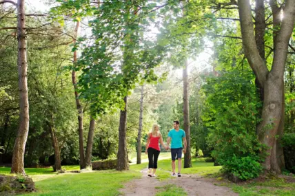 A couple walking through Queen’s Royal Park in Niagara-on-the-Lake.