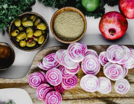 Chioggia Beets are sweeter, milder and more peppery than the typical red beets, and pair very well together with the goat cheese and Icewine. Known for their vibrant deep pink and white stripes that resemble a candy cane when sliced, the Chioggia beet adds a beautiful pop of color to the tart.