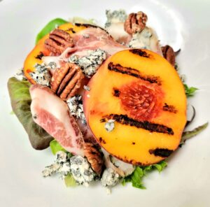 Fire Roasted Grain Fed Chicken Salad with Niagara Stone Fruit (Peaches) and White Honey Glaze