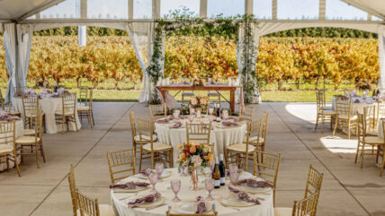 Alternatively, say “I do” under our Pondview Terrace, with gorgeous panoramic views of the vines. 3,600 square feet of elegant space is yours to decorate and arrange according to your vision, with plenty of help from our wedding planners along the way. The terrace is tented, and its sidewalls can be opened or closed depending on the weather conditions, ensuring you and your guests are always comfortable. This lovely space also makes for a beautiful reception area post-ceremony, with room for up to 175 guests.